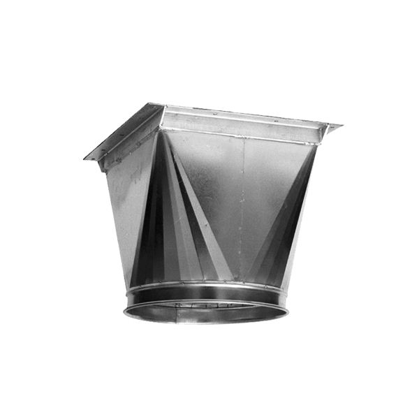 Côn chuyển ống gió vuông tròn dùng để chuyển đổi từ các ống gió vuông sang tròn để kết nối vào quạt, chuyển vuông sang tròn để kết nối với ống gió mềm đưa xuống miệng gió, hoặc dùng để mổ trích ra các chân rẽ tròn kết nối với ống gió mềm.