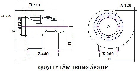 1. Quạt ly tâm trung áp 3HP - loại trực tiếp.