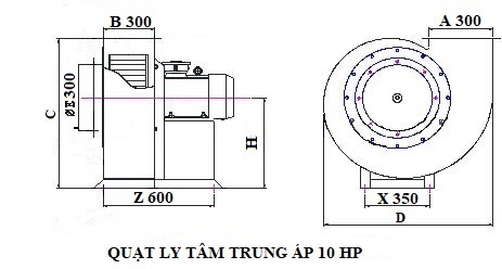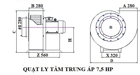 Thông số kỹ thuật quạt ly tâm trung áp 10HP