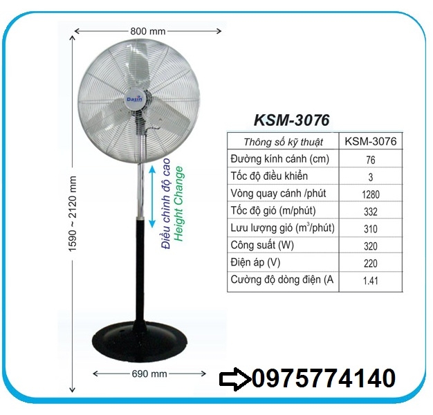 Quạt đứng Dasin KSM 3076H, Quạt đứng công nghiệp Dasin KSM-3076H
