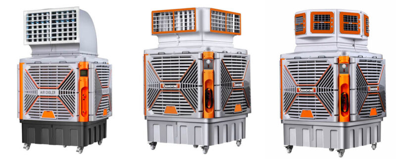 Quạt hơi nước công nghiệp là một thiết bị được sử dụng trong các môi trường công nghiệp để làm mát và tạo ẩm cho không gian làm việc. Quạt hơi nước công nghiệp hoạt động bằng cách đẩy không khí qua một bộ phận có nước được phun sương hoặc hơi nước, sau đó thổi không khí đã được làm ẩm ra môi trường
