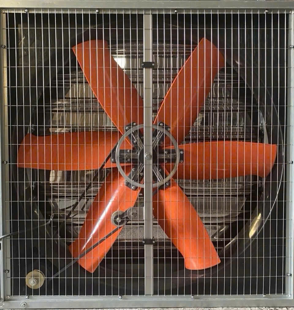Quạt thông gió vuông 1220x1220 motor gián tiếp được lắp đặt bên ngoài phân xưởng giúp loại bỏ các khí nặng mùi. Quạt thường được sử dụng trong các nhà máy nhiệt luyện, nhà máy đúc, nhà máy nhựa, các công ty may mặc, nhà máy mạ điện, nhà máy hóa chất, v.v…