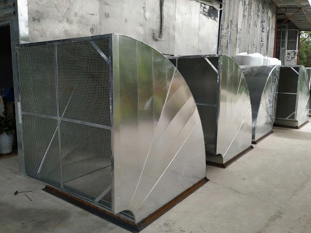 Hình ảnh quạt thông gió công nghiệp vuông được nối co che mưa tôn kẽm