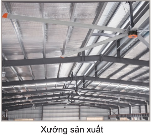 - Thiết kế gọn nhẹ, hiệu suất tốt: Với công suất 1.2 KW và sải cánh 4.9 mét, quạt mang lại khả năng làm mát đáng kể cho không gian có diện tích lên đến 500 m², giúp cải thiện sự thoáng khí trong các khu vực vừa và nhỏ.